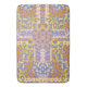 Naive handgezeichnet, blaugelbe, blühende, blumengeschmückte Muster, sehr lebhaft im Stil von Sinti und Roma, Hippy oder Stamm