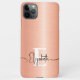 Modernes Peach Fuzz Pinsel Metallic Monogram Scrip iPhone Hülle