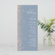 Das links Highlight dieses eleganten, modernen Hochzeitsprogramms ist das Glitzer-Design eines Pfirsichs-Imitats. Der anpassbare Text kombiniert weiße Handschrift, Copperplate und kursiv Schriftart auf einem staubblauen Hintergrund.