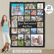 Erstellen Sie eine moderne, einzigartige Foto-Speicherdecke, die diese leicht hochzuladende Collage-Vorlage für Fotos mit 21 quadratischen und rechteckigen Bildformaten verwendet, um eine Vielzahl von Fotos aufzunehmen und mit Ihrem eigenen Text personalisiert zu sein. Der bearbeitbare Text wird in einer vorgeschlagenen und wechselbaren handgeschriebenen Pinselkalligraphie-Typografie in Weiß mit einer wechselbaren schwarzen Hintergrundfarbe dargestellt. Zeigen Sie Ihre Fotografie oder schaffen Sie ein unvergessliches Geschenk, um einen besondere Anlass oder einen Meilenstein zu feiern. HILFE: Für Hilfe bei Designänderungen oder Personalisierungen, Farbänderungen, Größenanpassungen oder der Übertragung des Designs auf ein anderes Produkt wenden Sie sich bitte an den Designer, bevor er die Bestellung über die Registerkarte Zazzle Chat MESSAGE unten bestellt, oder per E-Mail an makeitaboutyoustore@gmail.com.