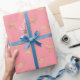 Dieses Verpackungspapier zeigt moderne Imitate mit goldenen Libellenmuster auf rosa Hintergrund.
