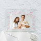 Teilen Sie die Liebe mit unserer modernen Valentinstag-Fotokarte, eine stilvolle Art, sich mit Freunden und Familie zu verbinden! Dieses Design mit dem "Happy Valentine's Day" in einem trendigen rosa Drehbuch, ergänzt durch von Hand gezeichnet rosa Herzen an den Seiten, ist sowohl spielerisch als auch elegant. Ihr horizontales Foto nimmt die Bühne im Zentrum, gerahmt durch einen mattierten oder transparenten Acrylhintergrund für einen schlichten, zeitgemäßen Look. Fügen Sie Ihren Namen und das Jahr in schwarzer Schrift hinzu, um es einzigartig zu machen. Diese personalisierte Karte ist der perfekte Weg, um an diesem Valentinstag herzliche Wünsche und Erinnerungen zu senden!