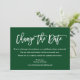 Modernes Pinselskript ändert das Datum Hochzeit verschoben Kartenjäger Grün