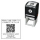 Moderne und einfache Briefmarke für Ihr Unternehmen oder Ihre Organisation. Fügen Sie Ihren QR-Code, Ihren Firmennamen, Scananweisungen und bis zu drei Zeilen benutzerdefinierten Texts hinzu, z. B. Ihre Tagline, Telefonnummer usw.