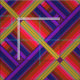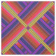 Dieses moderne geometrische Stoffdesign ist in leuchtenden Farben gehalten und mit einem zeitgenössischen, abstrakt gestreiften 3D-Muster in einem Farbspektrum aus Orange, lila, Gelb, Rot, Grün, Violett und Schwarz dekoriert, das einem wunderschönen Regenbogen ähnelt.