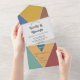 Diese moderne Hochzeitseinladung ist perfekt für das Ehepaar, das will, ein stilvolles Statement abzugeben. Die Einladung zeigt fett-Retro-Kalligraphie auf einem weißen Rechteck mit einem lebendigen, abstrakten geometrischen Hintergrund. Die künstlerische Verbindung von Alt und Neu verleiht jedem Event eine einladende und einzigartige Touch. Egal ob Sie eine Ansammlung planen oder eine große Feier planen, diese Einladung wird Ihren Gästen einen guten Eindruck vermitteln.