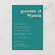 Dieses moderne Retro-aquamarine Programm von Veranstaltungen abgerundete Kanten Gehäuse Karte ist perfekt für Ihre einfache Vintage, farbenfrohe tropische boho Sommerhochzeit. Sein einzigartiger böhmischer Schriftart aus der Mitte des Jahrhunderts verleiht diesem Design eine klassisch minimalistische Hippie-Atmosphäre. Wenn Sie ein Design suchen, das helle, kühne Farben für Ihre kreative 70er Strandhochzeit bietet, dann sind dieses Produkt und seine koordinierende Hochzeitskollektion genau das, was Sie suchen. Fühlen Sie sich frei, die Farbe ändern, fügen Sie Ihre eigenen Kunstwerke, Grafiken, oder Fotos. Wenn Sie Fragen zum Design dieses Produktes haben, können Sie sich gerne an uns wenden!