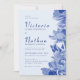 Modernes Retro Blue Chinoiserie Blumenstrauß Foto Einladung