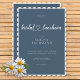 Eleganz und Einfachheit machen dieses Brautparty zum Mittag einmalig. Ein sanft staubiger, aquamariner, blauer Hintergrund nimmt die Bühne in den Mittelpunkt, umgeben von einem schlichten, weißen Rahmen. Das Skript fügt eine Touch der Verspieltheit mit seinem herzenförmigen Distanzstück hinzu. Erstellt von der einfachen Farmhouse Press.