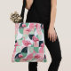 Der moderne Pink Flamingo Geometric Girly Chic Pattern Tote Sack mit modernen tropischen rosa Flamingos auf einem geometrischen Hintergrund. Perfekt als Geschenke für Geburtstag, Weihnachten und Feiertage. Erstellt von Evco Studio www.zazzle.com/store/evcostudio