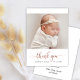 Modernes Rose Gold Script Simple Baby Foto Dankeskarte