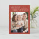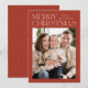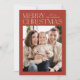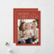 Moderne Weihnachtskarte mit "Fröhlicher Weihnachten", die oben im Design in trendiger weißer Schrift mit Rosthintergrund ausgestellt ist. Personalisieren Sie die einfache Weihnachtskarte mit Ihrem Familiennamen und Foto. Die Karte kehrt um, um einen Rosthintergrund mit subtilen weißen Punkten (Schnee) anzuzeigen.