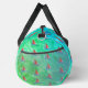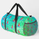 Farbenfrohe moderne Segelbootkonstruktion auf blauem und grünem Wasser.
