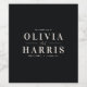 Modernes, minimalistisches, schwarz-weißes Hochzeitsdekor mit Gastgeschenk.