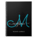Modernes Schwarz Aquamarines Script Mit Monogramm- Notizblock