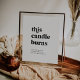 Dieses moderne Schwarz dieser Kerze brennt Gedenkschild ist perfekt für eine einfache Hochzeit. Das minimalistisch-schwarz-weiße Design besticht durch einen Retro-zeitgenössischen Schriftart mit einem einzigartigen böhmischen Ambiente. Ideal für jede Jahreszeit. Behalt es minimal, wie es ist, oder fügen Sie Ihre eigenen Grafiken und Kunstwerke.