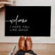 Diese Türmatte ist mit einem modernen schwarzen Hintergrund und einer minimalistischen Schriftart-Kombination ausgestattet. Es ist die perfekte Ergänzung, um Ihre Gäste in Ihrem Haus oder außerhalb Ihres Hauses zu empfangen.