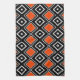 Modernes, geometrisch geformtes, schwarz-orangefarbenes Küchenhandtuch mit gemusterter Oberfläche.