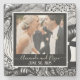 Ihre Verlobung oder ein anderes lustiges Foto, gegen ein elegantes modernes Schwarz-Weiß-Linear-Design, auf einem sinnvollen Beistand. Jeder hat Schlüssel, richtig?! Abstraktes Schwarz-Weiß-Dreieck ist ein originelles, digitales Kunstwerk, das eine Kurve hat und eine Kurve erzeugt. Champagner und schwarz gefärbte Typografie prägen das neue Paar.