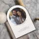 Moderne Schwarz & Weiß Texturierte Arch Hochzeit Foto Einladung. Feiern Sie Ihre Liebe mit unserem modernen Black & White Textured Arch Wedding Foto Einladung. Diese Einladung verbindet zeitgemäßes Design mit zeitloser Eleganz und schafft einen unvergesslichen Sake für Ihren besonderen Tag. Das Design zeichnet sich durch eine texturierte, weiße Kulisse aus, die eine taktile Dimension hinzufügt, die den Reiz der Einladung erhöht. Die knusprige schwarze Typografie bietet einen auffallenden Kontrast und sorgt für Lesbarkeit und Raffinesse. Die einzigartige, bogenförmige Vorlage rahmen Ihre Hochzeitsdetails mit modernem Flair und schafft ein unverwechselbares und auffälliges Design. Auf der Rückseite zeigen Sie Ihre Liebe mit einem runden Foto, zusammen mit den Namen, und fügen eine persönliche und romantische Touch hinzu. Um Ihren Gästen noch mehr zu erleichtern, können Sie auch Ihre Hochzeitswebsite-URL auf der Rückseite hinzufügen und so den Zugang zu weiteren Informationen über Ihren besonderen Tag erleichtern. Dieses Foto lädt Sie dazu ein, einen gepflegten Moment und wichtige Details mit Ihren Lieben zu teilen, um ihn zu einem wahrhaft einzigartigen und personalisierten Erlebnis zu machen. Diese Einladung ist ideal für Paare, die eine moderne Bogenhochzeit mit einer Touch klassischer Eleganz suchen. Das Schwarz-Weiß-Farbschema und die strukturierte Oberfläche schaffen eine raffinierte und zeitlose Ästhetik, während das runde Foto und die URL der Website ein zeitgenössisches und informatives Element hinzufügen. Passen Sie diese Einladung an, um Ihren persönlichen Stil perfekt widerzuspiegeln. Passen Sie den Text, die Schriftart, das Foto und die URL der Website an, um eine personalisierte Foto-Einladung zu erstellen, die das Wesen Ihrer Liebe erfasst und bequemen Zugang zu den Einzelheiten der Hochzeit bietet.