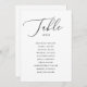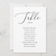 Diese moderne Hochzeitssitzkarte verbindet schlichte Eleganz mit praktischem Design. Mit fließendem schwarzen Skript und sauberem Serifentext auf weißem Hintergrund bietet es einen raffinierten Weg, Ihre Gäste zu ihren Tischen zu führen. Das minimalistische Layout behalte den Fokus auf Namen und Tischnummern und schafft so ein gepflegtes Aussehen, das sowohl intime als auch großartige Anzug bietet. Eine perfekte Ergänzung zu formellen, klassischen oder zeitgenössischen Hochzeitsthemen. Diese Sitzkarte ist eine mühelose Art, Ihrem Empfang Beauty und Ordnung zu bringen. Erhältlich als digitaler Download oder als gedruckte Karte.