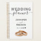 Dieses elegante Design wird für Ihren besonderen Tag individuell gestaltet. Schwarz-Graukalligraphie auf weißem Hintergrund mit 2 goldenen Ringen. Ändern Sie den Namen und das Datum und Sie haben den perfekten Hochzeitsplaner.