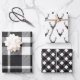 Moderne Schwarz-Weiß-Geschenkpapier mit Rentier-, kariert- und Büffel-Karo-Mustern.