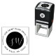 Moderne, schlichte, schwarz-weiße, runde Monogramm-Skript-selbstfärbende Briefmarke. Passen Sie diese Briefmarke mit Ihrem Namen und Text an.