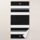 Dieses Badehandtuch-Set ist mit einem scharfen, modernen, schwarz-weiß gestreiften Stripe-Design ausgestattet. Auch das Badetuch weist auffällige graue Streifen auf. Am Boden des großen Badetüchers befindet sich Ihr Monogramm, auch in Weiß. Das kleinere Handtuch und das Waschlappen haben einen koordinierenden weißen Streifen auf schwarz. Sehr modern, kühn und attraktiv!