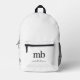 Modernes Schwarz-weißes Trendy Script Initial Mono Bedruckter Rucksack