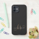 Modernes Black Gold Feminine Script Mit Monogramm iPhone Case. Dieses elegante, moderne Handy-Gehäuse lässt sich einfach mit Ihrem individuellen Monogramm und Namen personalisieren.