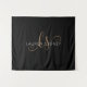 Modernes Schwarzes Gold Feminine Script Mit Monogramm Tapestry Einfach personalisieren Sie diese moderne elegante Tapisserie mit Ihrem eigenen Monogramm und Namen.