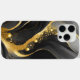 Elegante iPhone-Gehäuse in Schwarz-Grautönen mit goldenen Lichtern, Marmor fließend Muster