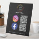 Modernes schwarzes Social Media QR Code Pedestzeic Sockelschild