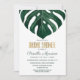 Eleganter, moderner und schlichter grüner tropischer Strand schweifen Käse-Monstera-Blatt auf weißem Hintergrund mit Imitaten bedruckt Goldfolie Typografie Sommer Bridal Dusche Einladungen. Dieses klassische und raffinierte Design ist perfekt für die elegante, stilvolle und trendige Bride zu sein. Personalisieren Sie Ihre eigene Nachricht auf der Vorderseite und ein individuelles Monogramm auf der Rückseite. Das gesamte Foto-Druckdesign.