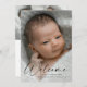 Modernes Script Welcome Baby Foto Geburtsdetails Danke Karte. Der Rücken beinhaltet ein zweites Foto und danke Ihnen, dass Sie personalisieren oder entfernen können, wenn Sie lieber Hand schreiben Sie Ihren Dank.