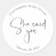 Modernes Script-Brautparty Sie sagte ja Runder Aufkleber