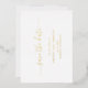 Einfache Hochzeitskarte ohne Foto Save the Date mit einem sauberen und minimalistischen Design mit einer eleganten Touch mit "Save the Date" in Skripten mit Swashes. Der gesamte Text auf der Vorderseite ist in echter Goldfolie. Ein modernes Save the Date ohne Bilder, das sich wunderbar mit jedem Hochzeitsstil abstimmt.