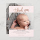 Dieses moderne 2-Foto Dankeschön Note verfügt über Rose Gold handgeschriebene Drehbuch danke, persönliche Nachricht und Foto auf der Vorderseite. Auf der Rückseite befindet sich ein zweites Baby-Foto, das ein volles, senkrechte Foto ist. Klicken Sie auf die Schaltfläche Bearbeiten, um dieses Design mit Ihren Fotos und Details anzupassen.