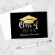 Custom Abschluss danken Sie Karten ein schwarzer Hintergrund (kann angepasst werden) mit stilvollen und trendigen Gold-und weiße Kalligraphie Skript-Design mit grad-Kappe und Graduate-Namen in modernen Drehbüchern.