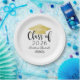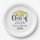 Die Teller mit kundenspezifischem Papier-Abschluss zeichnen sich durch ein modernes und elegantes personalisiertes Design aus, das den Namen des Absolventen, sein Klassenjahr in trendiger schwarzer Kalligrafie-Schrift, ein goldfarbenes Gradmützenmotiv und Scrollakzent aufweist.