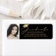 Moderne Abschluss Foto Rücksendeadressen-Aufkleber für die Einladungen, Ankündigungen oder Dankeschön-Karten Ihres Absolventen mit einem eleganten handgeschriebenen Drehbuch-Typografie GRADUATE Titeldesign mit einem Graduierungspapier in Champagnergold auf Ihre Wahl der Hintergrundfarbe (schwarz dargestellt). HILFE: Für Hilfe bei der Modifizierung oder Personalisierung des Designs, bei Farbänderungen, bei der Übertragung des Designs auf ein anderes Produkt oder wenn Sie die Dinge koordinieren möchten, wenden Sie sich bitte an den Designer, bevor Sie die Bestellung über den Zazzle Chat MESSAGE Tab durchführen oder per E-Mail an makeitaboutyoustore@gmail.com.