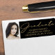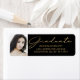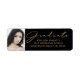Moderne Abschluss Foto Rücksendeadressen-Aufkleber für die Einladungen, Ankündigungen oder Dankeschön-Karten mit einem eleganten handgeschriebenen Schrift-Typografie GRADUATE Titeldesign in Champagnergold auf Ihre Wahl der Hintergrundfarbe (auf schwarz gezeigt). HILFE: Für Hilfe bei der Modifizierung oder Personalisierung des Designs, bei Farbänderungen, bei der Übertragung des Designs auf ein anderes Produkt oder wenn Sie die Dinge koordinieren möchten, wenden Sie sich bitte an den Designer, bevor Sie die Bestellung über den Zazzle Chat MESSAGE Tab durchführen oder per E-Mail an makeitaboutyoustore@gmail.com.
