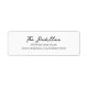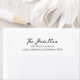 Versenden Sie Ihre Urlaubspost stilvoll mit diesem modernen Script-Rücksendeaufkleber. Dieses festliche Design mit eleganter handgeschriebener Typografie, gepaart mit reinen Serif-Akzenten, fügt Ihren Weihnachtskarten, Einladungen und der saisonalen Korrespondenz eine raffinierte Touch hinzu. Personalisiert mit Ihrem Familiennamen und Ihrer Adresse, verbindet es zeitloses Design mit Urlaubsszauber - perfekt, um einen zusammenhängenden, eleganten Look für Ihre Urlaubssegmente zu schaffen.