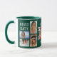 Moderne Script Multi Foto Abschluss Graduate Coffee Tasse bietet fünf Ihrer Lieblings-Fotos Ihrer Uni, Universität oder High School Absolvent mit dem modernen weißen Skript-Overlay "Graduate" auf einem grünen Hintergrund. Einfach, stilvoll und elegant. Das ist das perfekte personalisierte Geschenk für einen Absolventen. Erstellt von ©Evco Studio www.zazzle.com/store/evcostudio