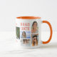Moderne Script Multi Foto Abschluss Graduate Coffee Tasse bietet fünf Ihrer Lieblings-Fotos Ihrer Uni, Universität oder High School Absolvent mit dem modernen orange Skript-Overlay "Graduate". Einfach, stilvoll und elegant. Das ist das perfekte personalisierte Geschenk für einen Absolventen. Erstellt von ©Evco Studio www.zazzle.com/store/evcostudio
