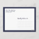 Moderne Script Navy Blue Wedding Dankeschön Postcard mit dem Titel in weißem, modernem Script-Schriftart mit Details in weißen modernen Sans Serif Schriftart auf marineblau Hintergrund.