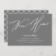 Graue neue Zuhause-Adressenankündigung mit einem modernen Script-Schriftart mit einem koordinierenden karierten Rücken für eine zusätzliche Touch.