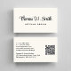 Moderne, berufliche Visitenkarte mit Ihrem Namen in einem stilvollen, fett formatierten Skript und Ihrem Titel und Kontaktdaten (wie E-Mail, Telefonnummern, Firmenname und Postanschrift) in einer sauberen, einfachen Schrift. Fügen Sie die URL-Adresse Ihrer Website hinzu, um einen skalierbaren QR-Code zu erstellen, der mit Ihrer Website, Ihrem Portfolio, Ihrem Social Media-Profil oder einer anderen Plattform verbunden ist, die Ihre Arbeit präsentiert. Dies erleichtert Kunden und Kunden die Erkundung Ihrer Expertise.