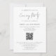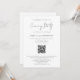 Modernes Script QR Code Hochzeit Abend Party. Verfügbar in digitaler Form und gedruckt. Fügen Sie Ihren QR-Code zu Ihrer Hochzeitswebsite hinzu, damit Ihre Gäste alle Details online sehen können, ohne separate Gehäuse benötigen zu müssen. Eine informelle Set-Typografie in schwarz für Abend Party ergänzt die Erholung des Textes, die Sie leicht personalisieren können.